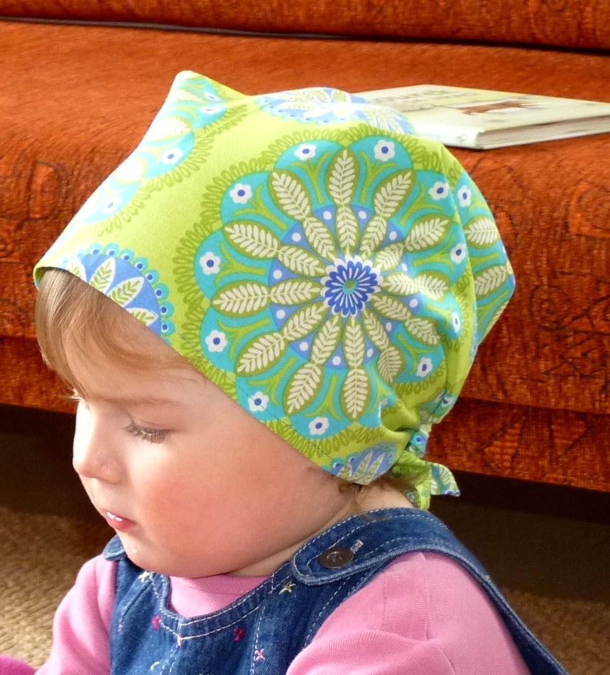 Dětský zelený šátek s velkými květy, které připomínají kalejdoskop. Materiál je vzdušný a velice příjemný. Jde o 100% bavlnu. Šátek doporučujeme prát v pračce na 40°C Šáteček posíláme v dárkové krabičce. Je tedy možné jej hned darovat.