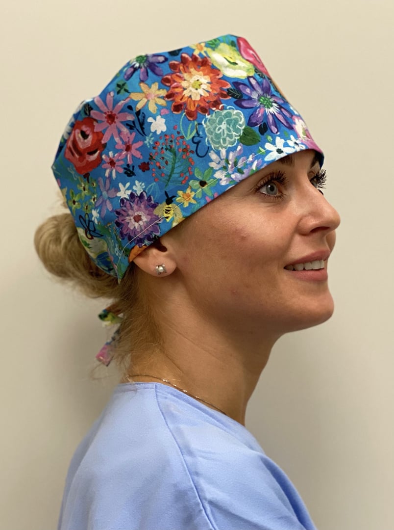 Operační čepice ušitá ze 100% bavlny. Látky jsou objednávány od předních světových designérů. Čepice má jednu velikost. Na zadní části čepice je rozparek, díky kterému se vejde pod čepici i culík. Popřípadě je možné mít drdol z čepice ven. Materiál je opravdu kvalitní a údržba snadná. Doporučujeme prát v pračce maximálně na 40 stupňů. Barvy jsou i po opakovaném vyprání zářivé. Čepičku zasíláme v dárkové krabičce. Je tedy možné ji ihned darovat. Cena: 300 CZK