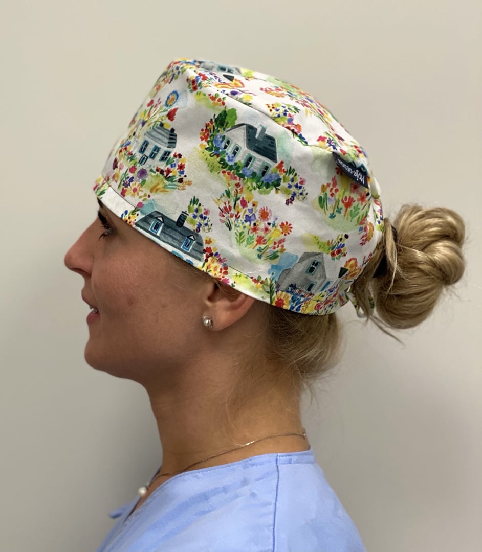 Operační čepice ušitá ze 100% bavlny. Látky jsou objednávány od předních světových designérů. Čepice má jednu velikost. Na zadní části čepice je rozparek, díky kterému se vejde pod čepici i culík. Popřípadě je možné mít drdol z čepice ven. Materiál je opravdu kvalitní a údržba snadná. Doporučujeme prát v pračce maximálně na 40 stupňů. Barvy jsou i po opakovaném vyprání zářivé. Čepičku zasíláme v dárkové krabičce. Je tedy možné ji ihned darovat. Cena: 300 CZK