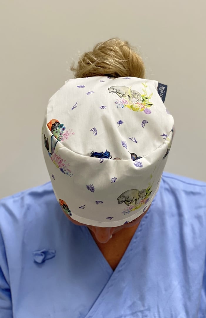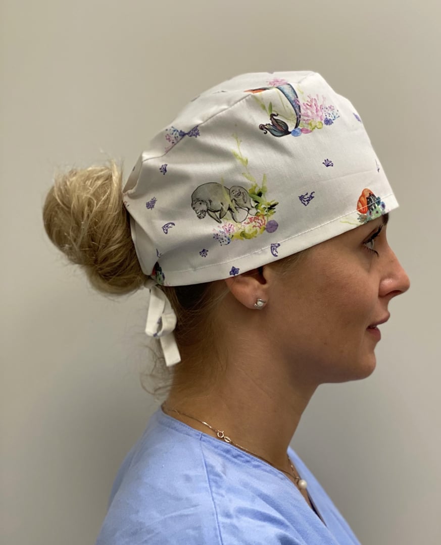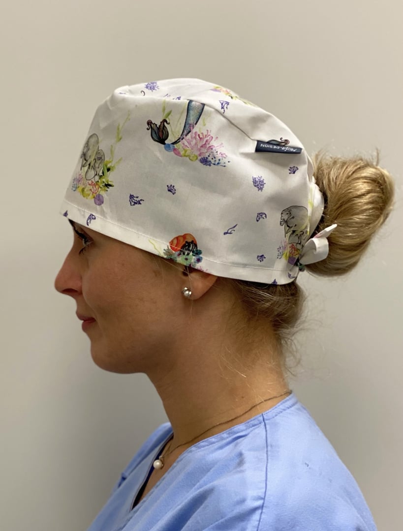 Operační čepice ušitá ze 100% bavlny. Látky jsou objednávány od předních světových designérů. Čepice má jednu velikost. Na zadní části čepice je rozparek, díky kterému se vejde pod čepici i culík. Popřípadě je možné mít drdol z čepice ven. Materiál je opravdu kvalitní a údržba snadná. Doporučujeme prát v pračce maximálně na 40 stupňů. Barvy jsou i po opakovaném vyprání zářivé. Čepičku zasíláme v dárkové krabičce. Je tedy možné ji ihned darovat. Cena: 300 CZK