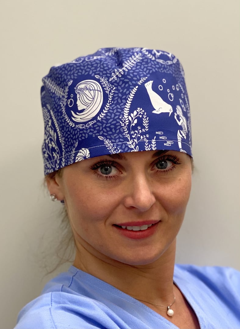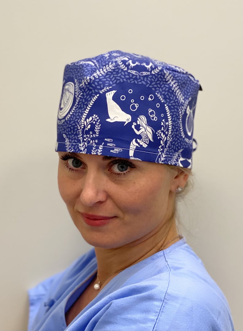 Operační čepice ušitá ze 100% bavlny. Látky jsou objednávány od předních světových designérů. Čepice má jednu velikost. Na zadní části čepice je rozparek, díky kterému se vejde pod čepici i culík. Popřípadě je možné mít drdol z čepice ven. Materiál je opravdu kvalitní a údržba snadná. Doporučujeme prát v pračce maximálně na 40 stupňů. Barvy jsou i po opakovaném vyprání zářivé. Čepičku zasíláme v dárkové krabičce. Je tedy možné ji ihned darovat. Cena: 300 CZK