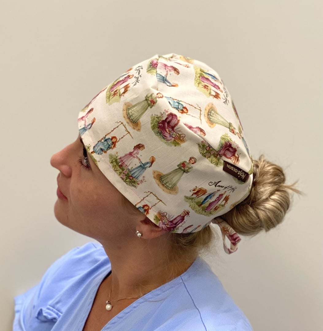 Operační čepice ušitá ze 100% bavlny. Látky jsou objednávány od předních světových designérů. Čepice má jednu velikost. Na zadní části čepice je rozparek, díky kterému se vejde pod čepici i culík. Popřípadě je možné mít drdol z čepice ven. Materiál je opravdu kvalitní a údržba snadná. Doporučujeme prát v pračce maximálně na 40 stupňů. Barvy jsou i po opakovaném vyprání zářivé. Čepičku zasíláme v dárkové krabičce. Je tedy možné ji ihned darovat. Cena: 300 CZK