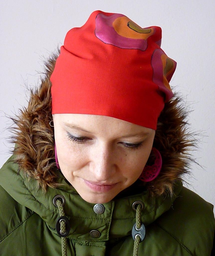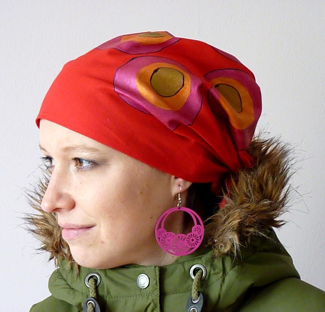 Červený bavlněný šátek s oblíbenými kruhy. Barvy jsou metalické, tedy lesklé a velmi efektní. Šátek posíláme v dárkové krabičce, takže je možné jej hned věnovat. Barvy jsou i po vyprání stálé. Doporučujeme prát v ruce do 40°C. Žehlit šátek po rubové straně.